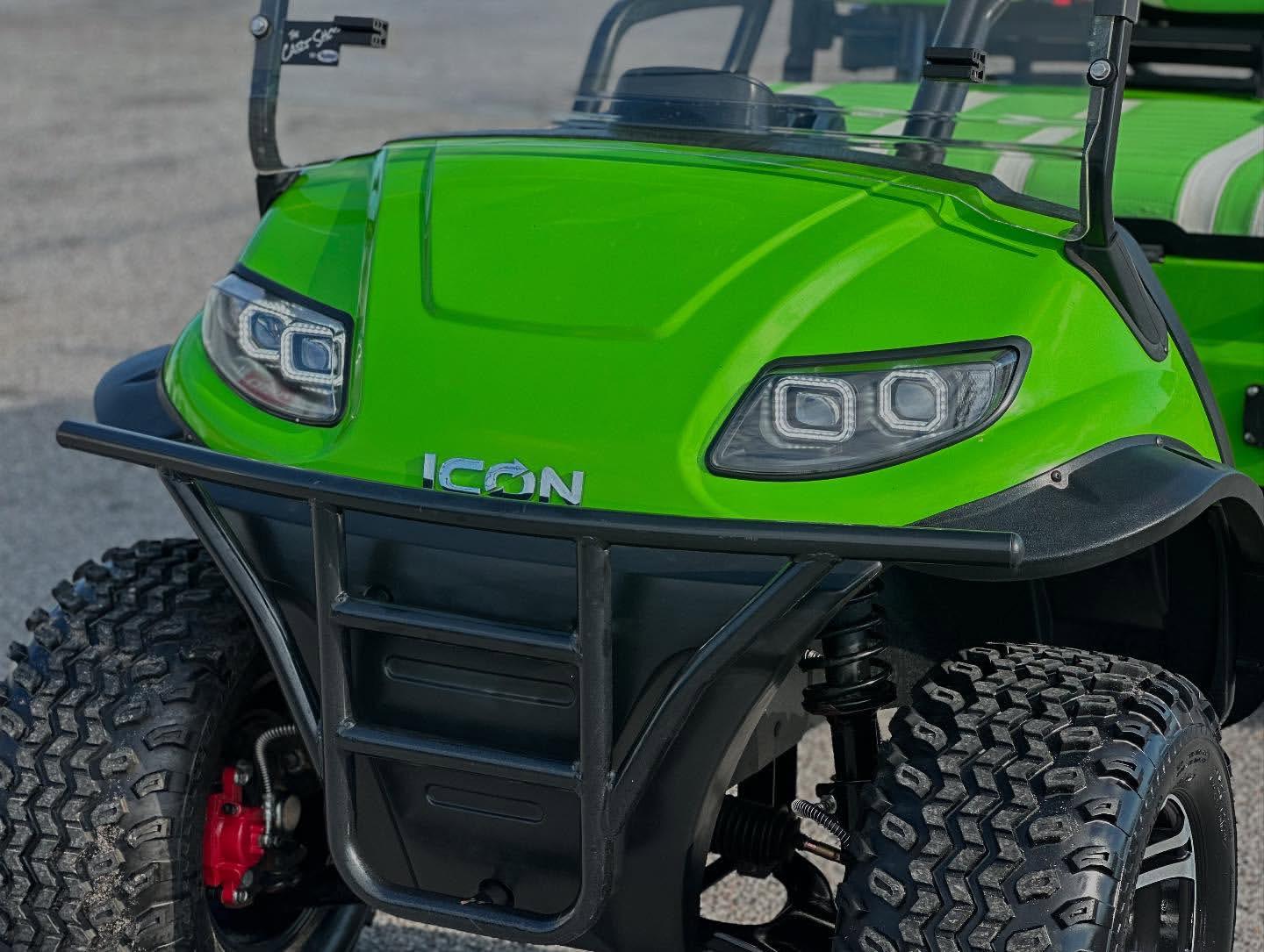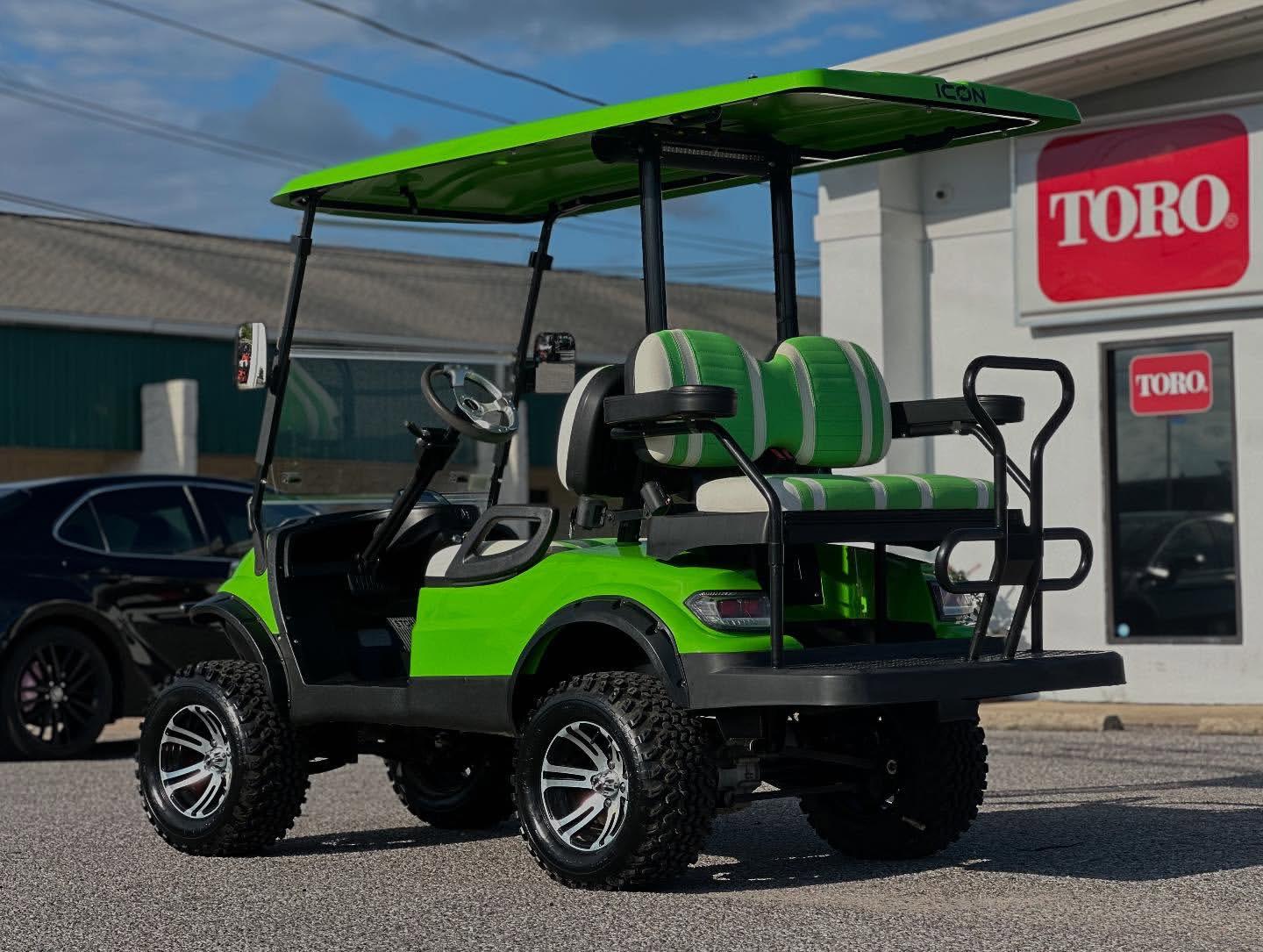 - Front Suspension: Electric- Independent leaf spring w/ dual hydraulic shocks ; Gas- Independent leaf spring w/ dual hydraulic shocks